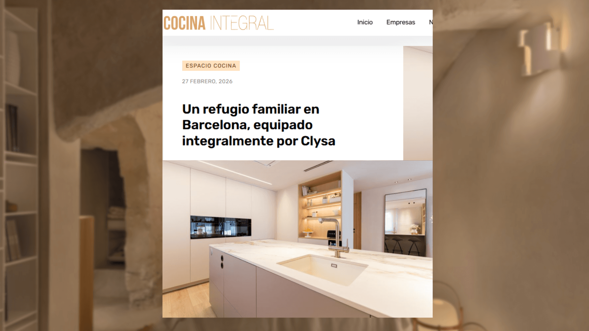 La revista Cocina Integral comparte el proyecto más novedoso de Clysa en Barcelona: un refugio familiar equipado integralmente por Clysa, una vivienda unifamiliar transformada mediante un equipamiento global que abarca todas las estancias, desde las zonas exteriores hasta la suite principal.