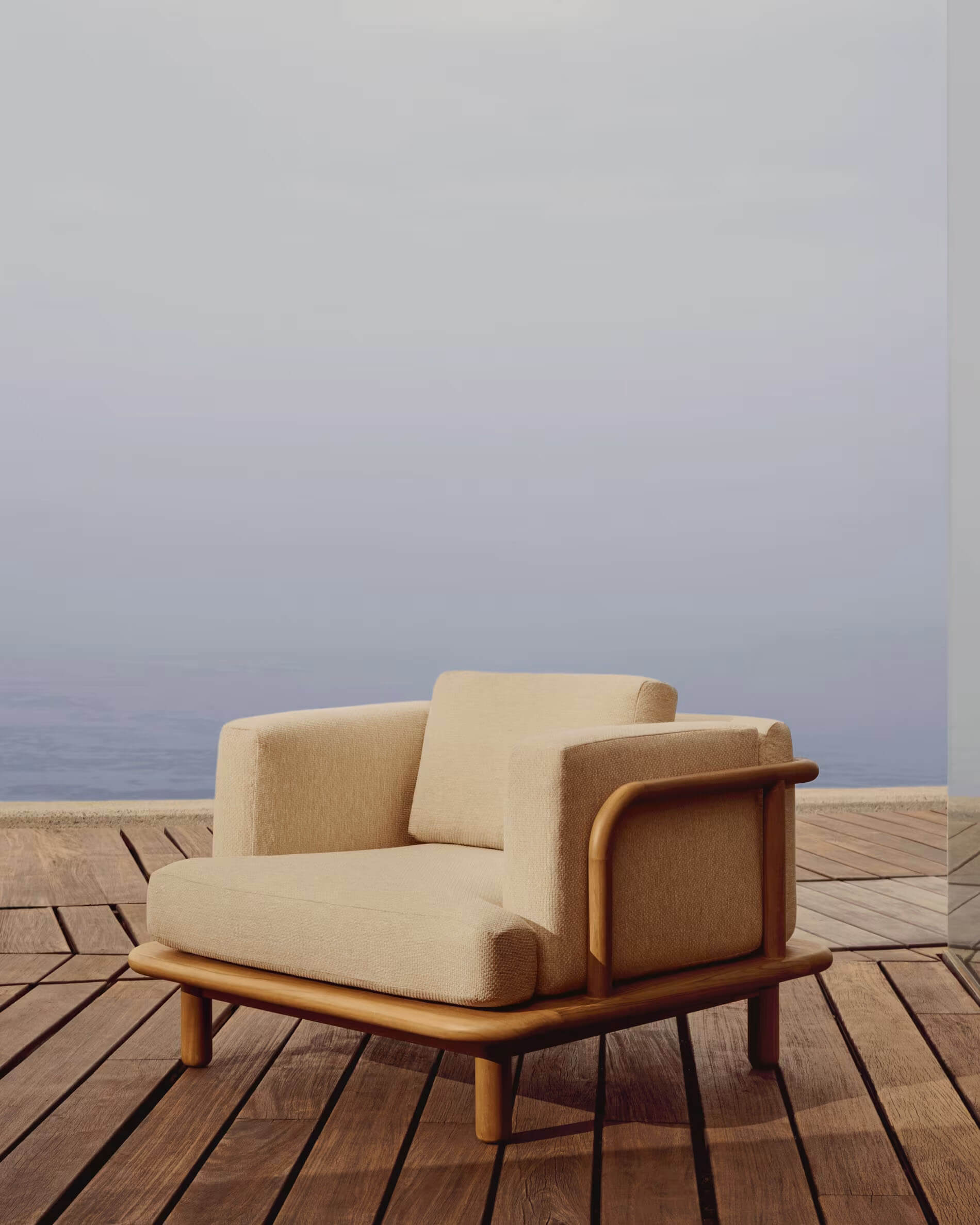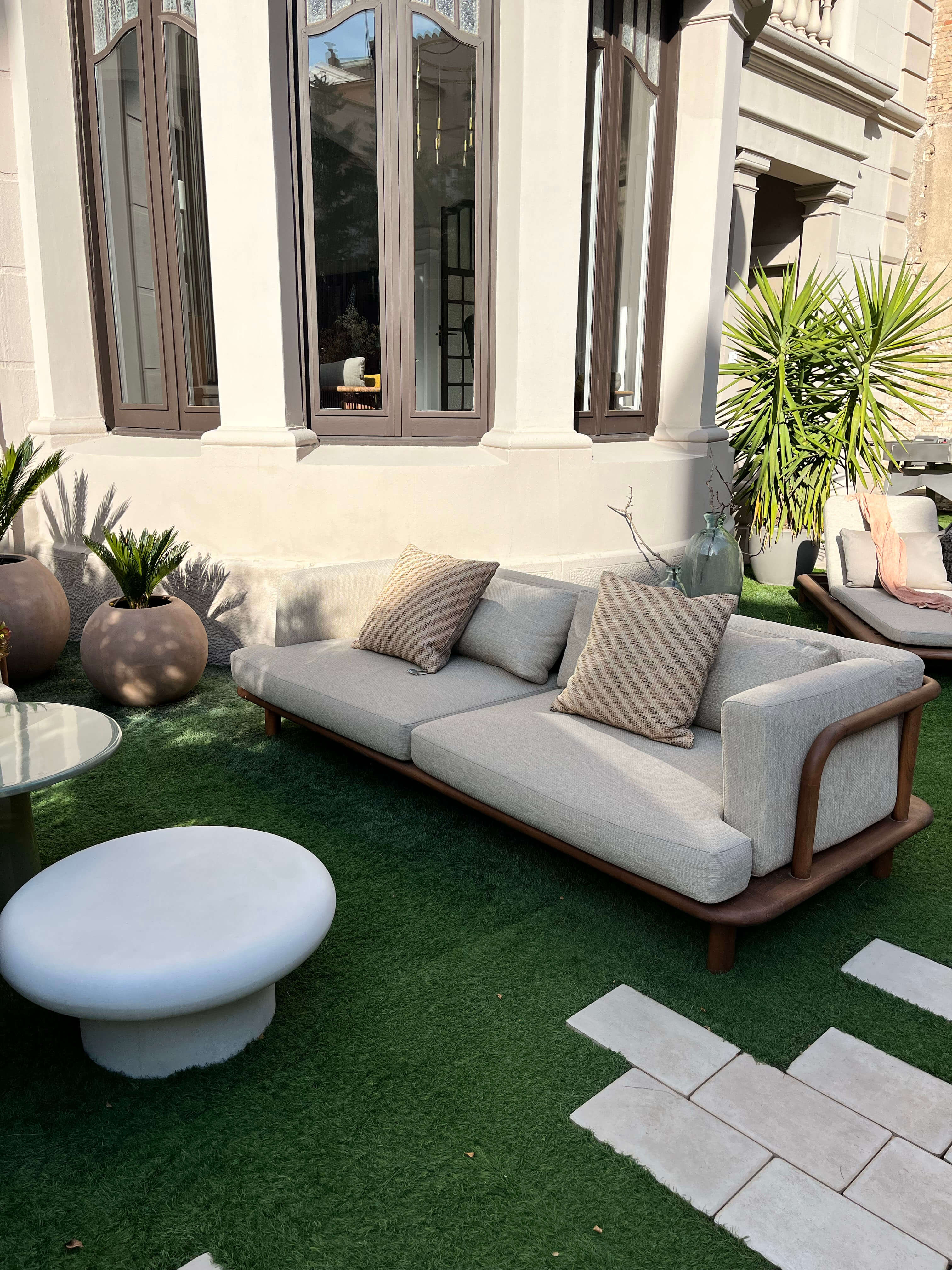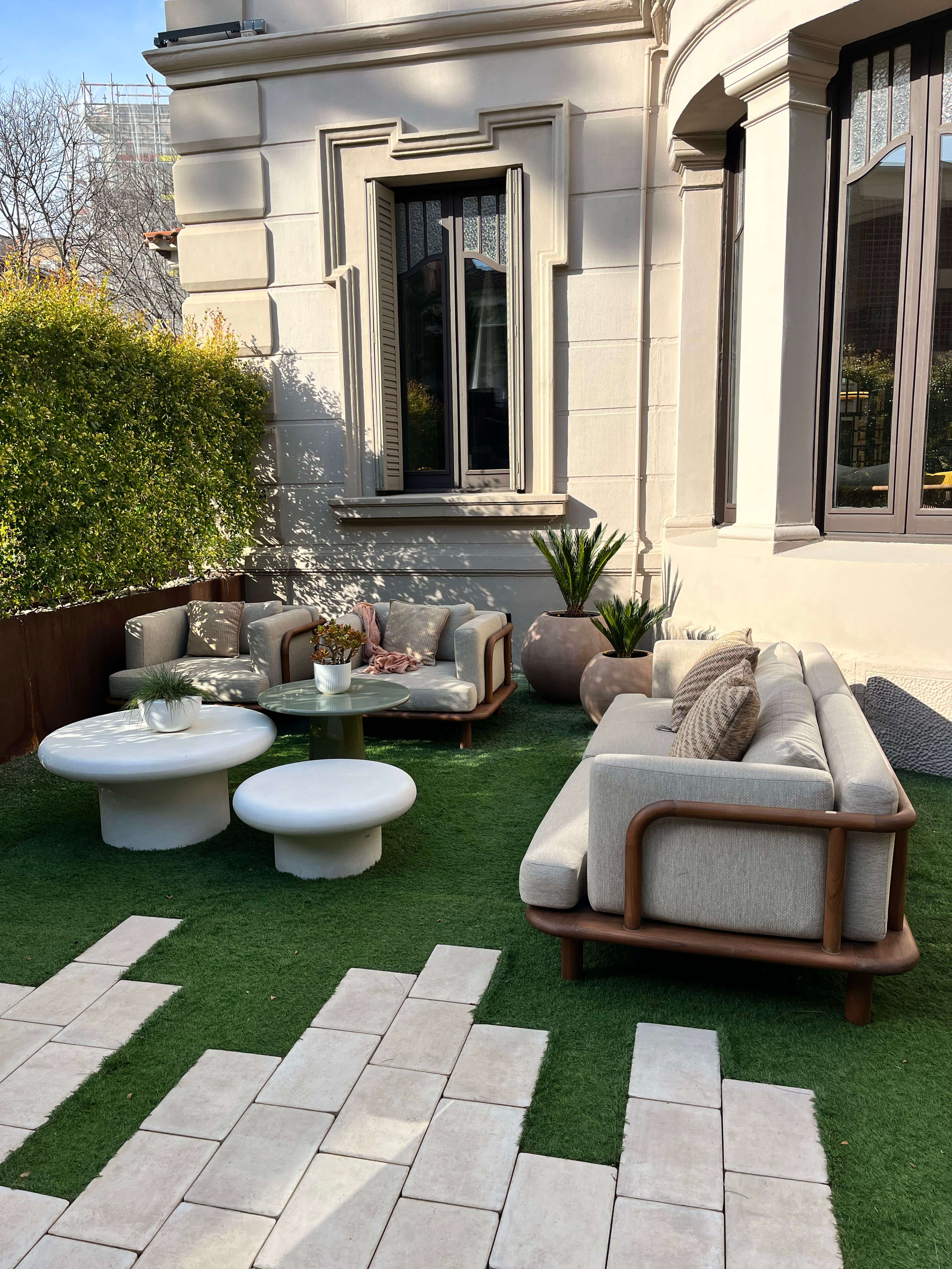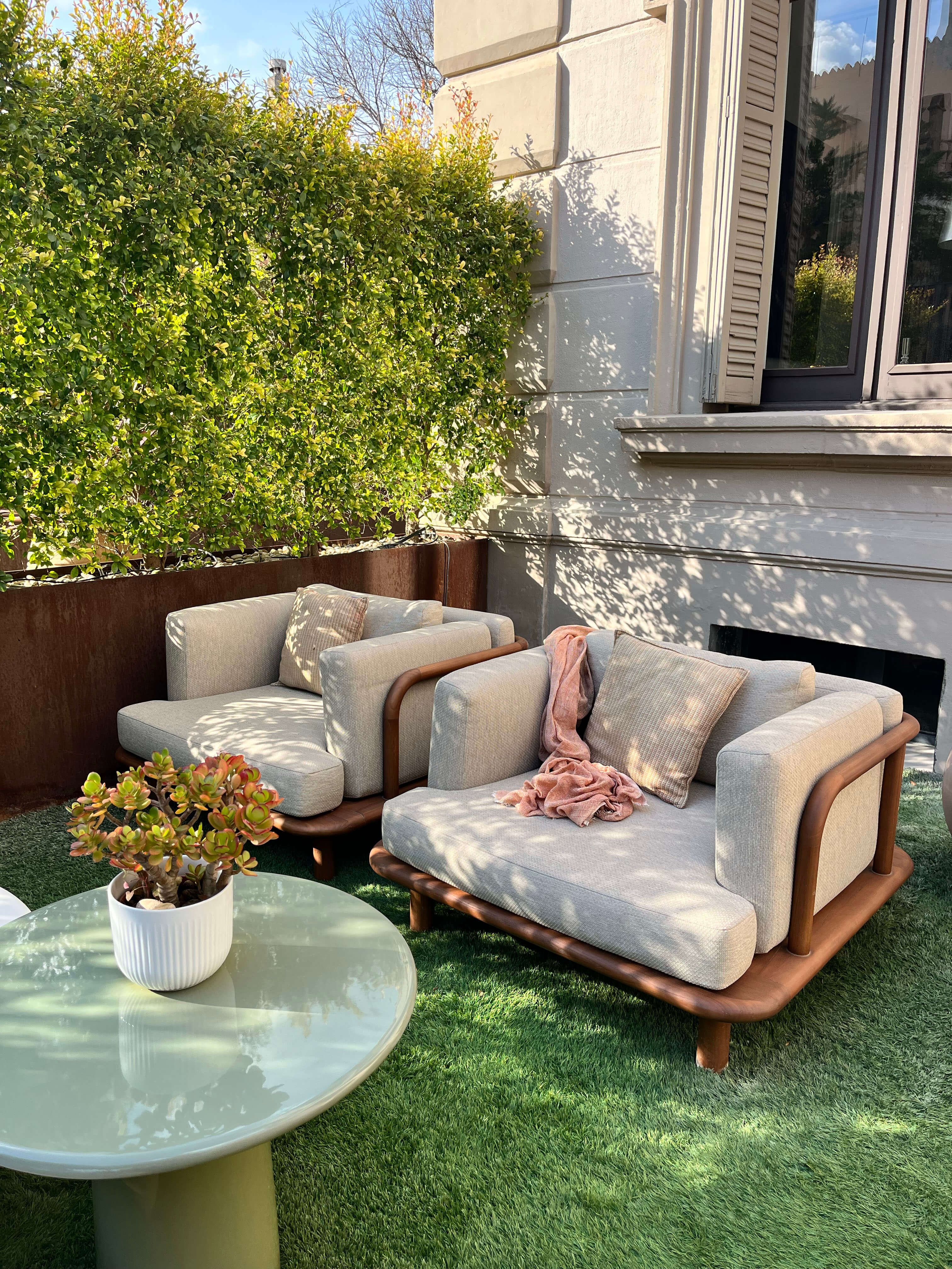 Madera maciza de teca, cemento blanco y cemento verde