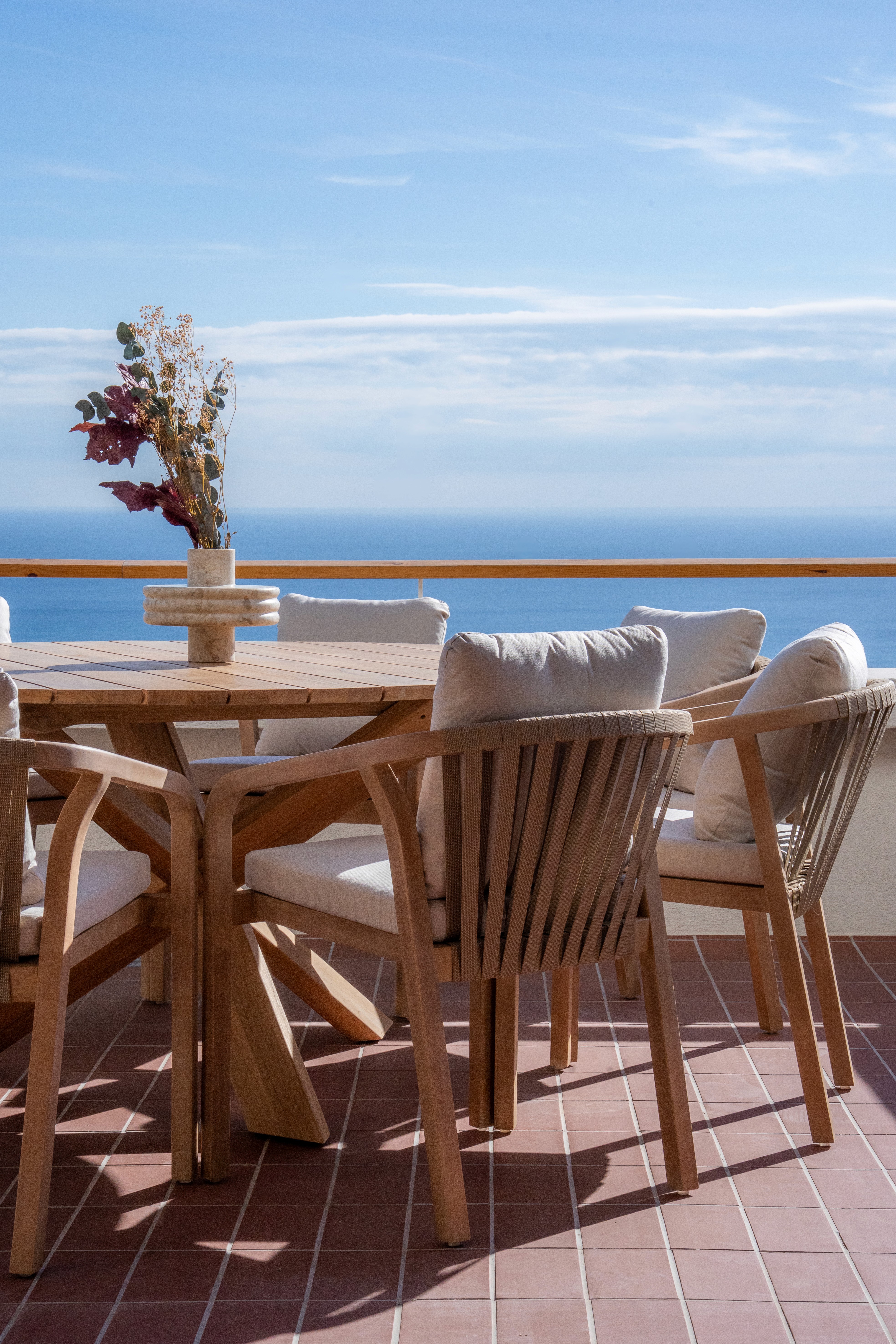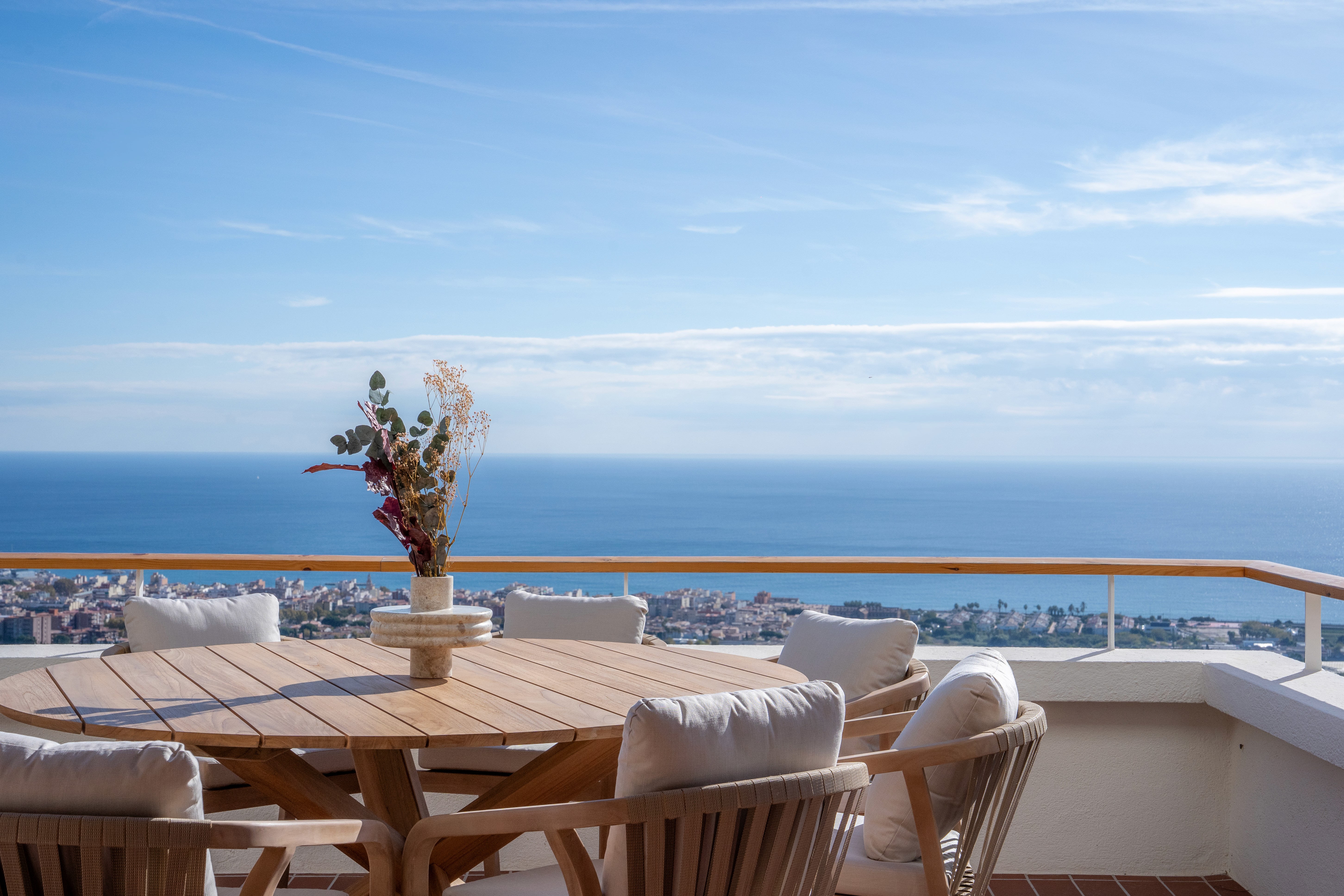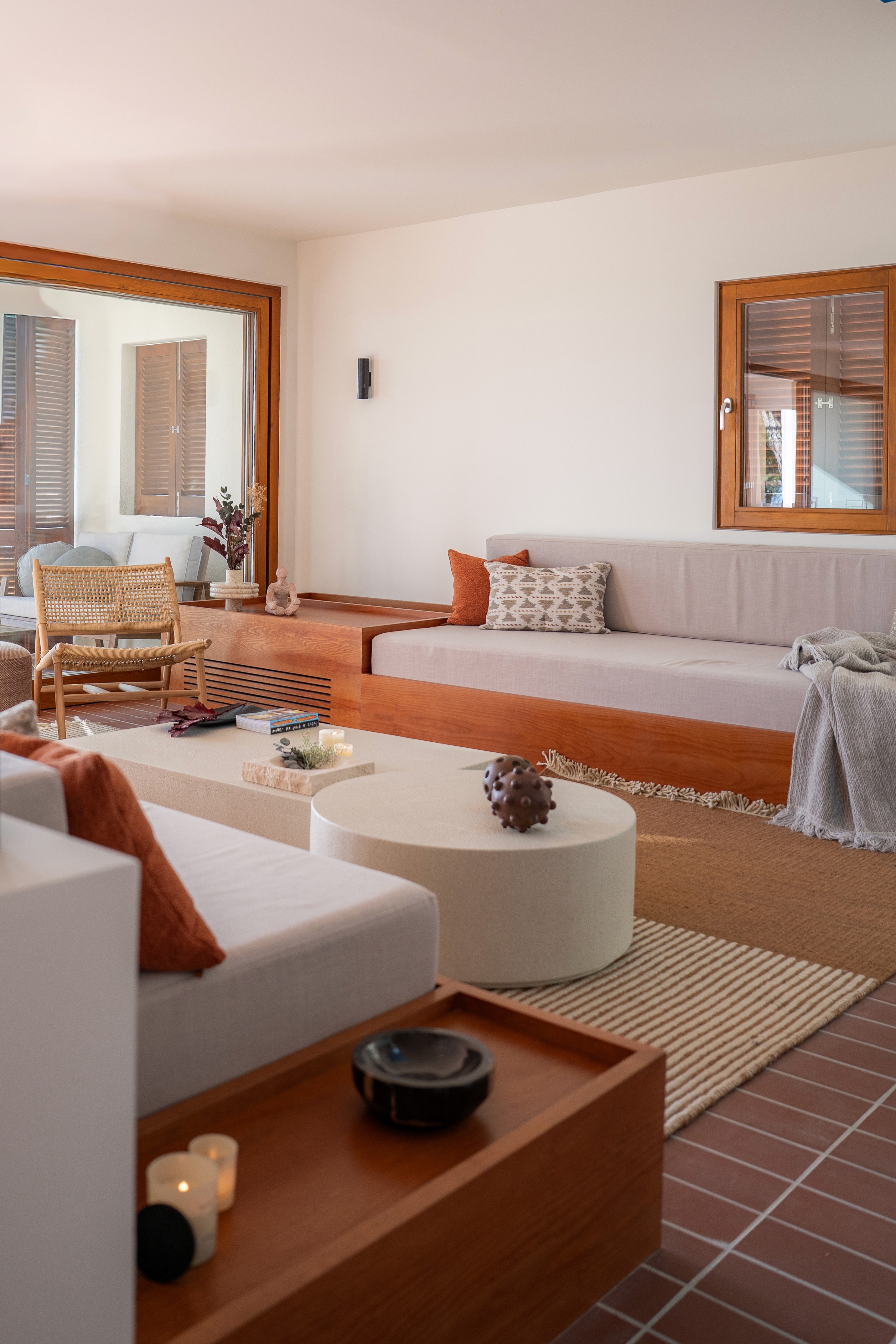 Más que amueblar, el objetivo ha sido construir una forma de habitar: serena, abierta y conectada con el entorno, donde cada pieza acompaña la arquitectura y potencia la experiencia de vivir frente al Mediterráneo.
