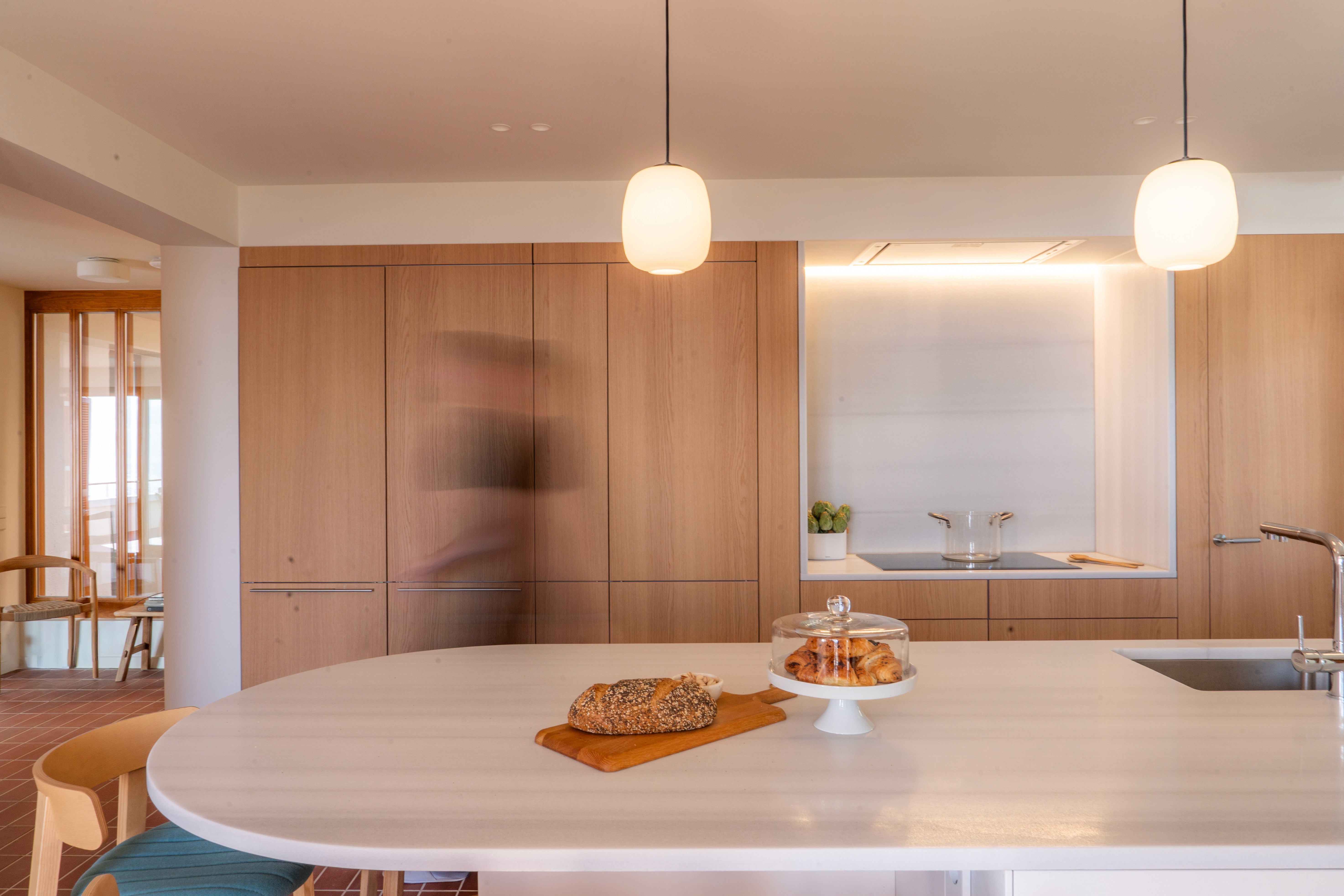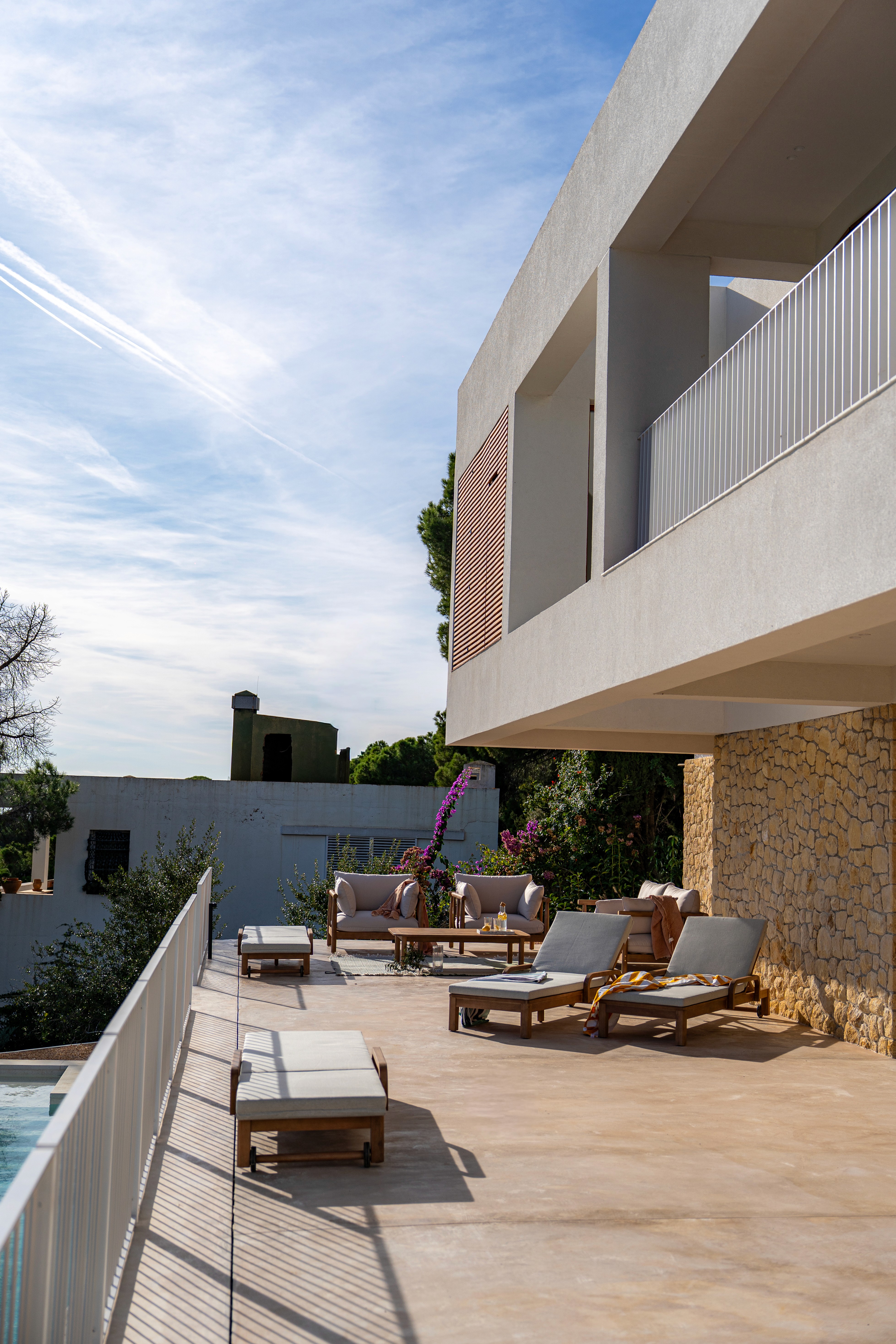Desde Clysa hemos desarrollado el equipamiento y la distribución integral de todo el mobiliario, entendiendo la vivienda como un conjunto continuo de espacios que se relacionan entre sí y con el paisaje. Interior y exterior se funden en un mismo lenguaje material, donde la luz, las texturas y las vistas al mar marcan cada decisión.